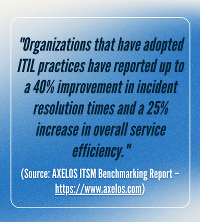 - Organizational Efficiency: Implementing ITIL practices can lead to more efficient processes, reduced costs, and improved customer satisfaction.